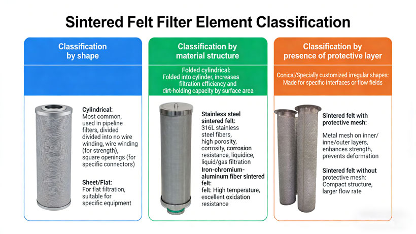 Фильтрующий элемент из спеченного фетра из нержавеющей стали: изготовлен из волокон нержавеющей стали 316L, спеченных при высокой температуре, с высокой пористостью и сильной коррозионной стойкостью, подходит для фильтрации жидкостей и газов.